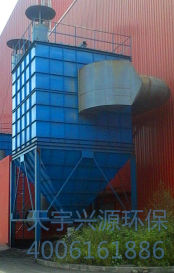在正常運行時,含塵氣體在風機的引導下從進風口進入, 經(jīng)斜隔板轉向至灰斗,同時氣流速度變慢,由于慣性作用,氣體中粗顆粒粉塵落入灰斗,細小塵粒隨氣流折而向上進入過濾室,粉塵附著于濾袋的外表面,凈化后的氣體透過濾袋進入上部清潔室,各分室清潔室的氣流匯集后經(jīng)出風口由集塵系統(tǒng)的主風機吸出而排入大氣。 隨著過濾的不斷進行,附著于濾袋外表面的粉塵逐漸增多,氣流通過的阻力也逐漸增大,當達到一定阻力值時,清灰電控儀控制集塵機第一個分室的提升閥關閉,切斷通過過濾室的氣流;再開啟脈沖閥釋放高壓空氣,對第一個分室氣箱內所有濾袋進行脈沖噴吹清灰(停風清灰),濾袋突然膨脹,使表面積附的粉塵振落,在重力的作用下掉入灰斗內,隨后清灰電控儀按規(guī)定間隔時間打開提升閥,恢復第一室的過濾;如此不斷重復上述整個過程,直至最后一個分室清灰完畢,關閉清灰電控儀,收塵器全部恢復正常過濾狀態(tài)。分室結構設計,可拼裝組合達至更大風量。