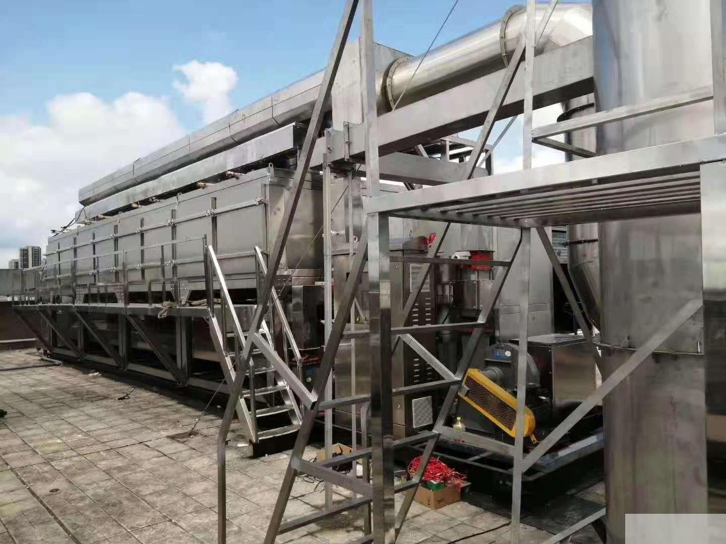 催化燃燒裝置(RCO):首先通過(guò)除塵阻火系統(tǒng)。然后進(jìn)入換熱器,再送到加熱室,使氣體達(dá)到燃燒反應(yīng)溫度,再通過(guò)催化床的作用,使有機(jī)廢氣分解成二氧化碳和水,再進(jìn)入換熱器與低溫氣體進(jìn)行熱交換,使進(jìn)入的氣體溫度升高達(dá)到反應(yīng)溫度。如達(dá)不到反應(yīng)溫度,加熱系統(tǒng)科通過(guò)自控系統(tǒng)實(shí)現(xiàn)補(bǔ)償加熱。利用催化劑做中間體,使有機(jī)氣體在較低的溫度下,變成無(wú)害的水和二氧化碳?xì)怏w
