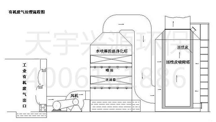 廢氣凈化塔利用氣體與液體間的接觸,而將氣體中的污染物傳送到液體中,然后再將清潔氣體與被污染的液體分離,達(dá)到清凈空氣的目的。廢氣經(jīng)由填充式廢氣凈化塔,采用氣液逆向吸收方式處理,即液體自塔頂向下以霧狀(或小液滴)噴撒而下。廢氣則由塔體(逆向流)達(dá)到氣液接觸之目的。此處理方可冷卻廢氣、調(diào)理氣體及去除顆粒,再經(jīng)過(guò)除霧段處理后,排入大氣中。洗滌后,廢液收集至集水槽中,再排放至廢水系統(tǒng)處理。