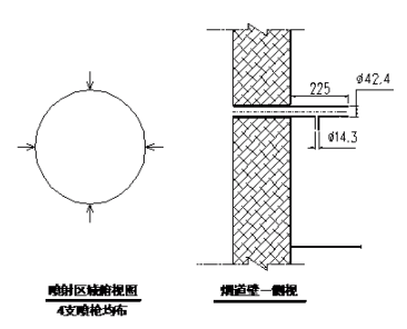 噴槍位置位于C2/C3煙道出口,共設(shè)置4支噴槍,氨水被平均分配到每支噴槍內(nèi),保證脫硫劑充分覆蓋整個煙道。