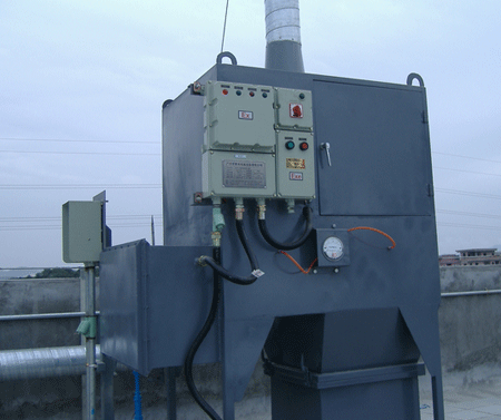原理:在離心風(fēng)機(jī)的負(fù)壓作用下,粉塵從排氣口進(jìn)入后,通過(guò)風(fēng)管集中后進(jìn)入粉塵凈化器,在擋風(fēng)板的作用下,氣流向上流動(dòng),流速降低,部分大顆粒粉塵由于慣性力的作用被分離出來(lái)落入灰斗。細(xì)粉塵進(jìn)入凈化室,當(dāng)通過(guò)專用粉塵防靜電聚脂纖維濾芯時(shí),粉塵被阻留在濾筒的外表面,凈化后的氣體經(jīng)濾筒口進(jìn)入上箱體,從風(fēng)機(jī)出風(fēng)口排出。