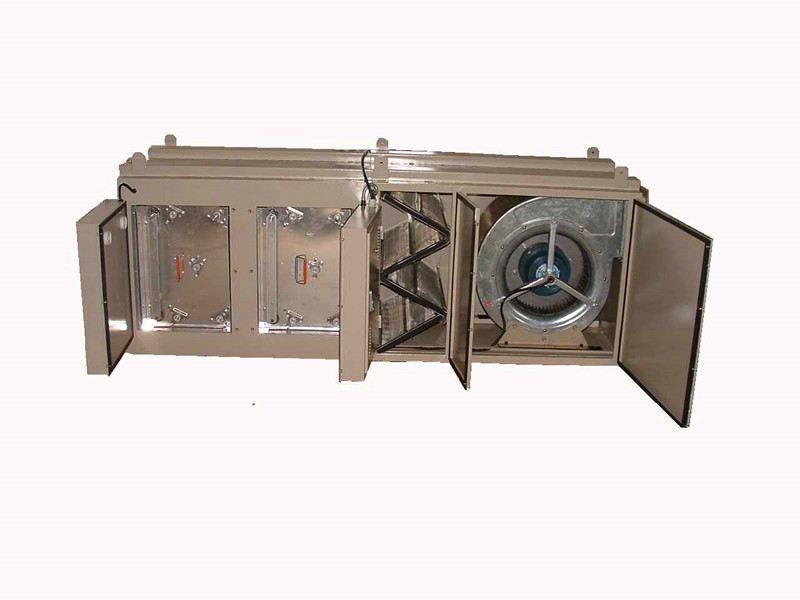 本產(chǎn)品采用機械凈化與靜電凈化雙重作用,含油煙粉塵被風機吸入管道后,首先進入初級裝置—凈化整流室,采用重力慣性凈化技術,箱體內(nèi)特殊結(jié)構(gòu)逐步對大顆粒污染物進行分級物理分離,并且均衡整流,分離出的大顆粒油滴在自身重力的作用下注入油槽排出,剩余的小粒徑的污染物進入次級裝置—高壓表電場,靜電場內(nèi)部分兩級,第一級為電離器,強電場使微粒荷電,成為帶電微粒,這些帶電微粒到達第二級集塵器后立刻被收集電極吸附,且部分炭化,同時高壓靜電場有效地降解有害成份,起到消毒、除味作用,最后通過濾網(wǎng)格柵,潔凈的空氣排出。我公司同時除去異味。